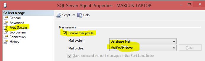 Simple as that! But we have one thing left. We have to activate the mail function to SQL Server Agent.
