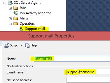 On the SQL Server Agent you create operators that should/could be contacted after scheduled jobs have been running. Meaning, if we would like to send a notification by email we need to add an operator with an email.