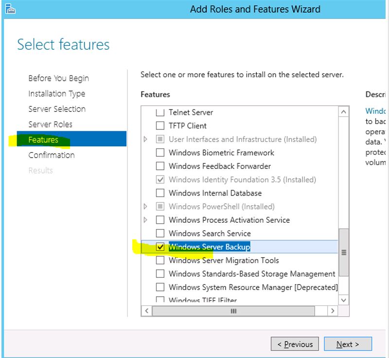 The Windows Server 2008 and 2012 doesn’t have Windows Server Backup pre-installed but they have the package included so you have to start with installing the package.