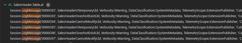 By the way, there are a total of five of these internal logmessage in salesheader , 0000G92, 0000G93, 0000G94, 0000G95, 0000G96, 0000G97
