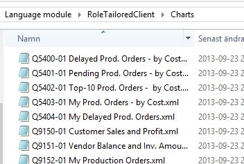 You have probably ended up here because you want to export all charts but the standard NAV functionality only lets you export them one by one ( Generic Charts on msdn). Maybe you currently are upgrading a customer database from a pre Dynamics NAV RTC version and now you want to add the charts to the current database.  Or you have a database with a different language base and want to export/import the charts from another database with a different language. Anyway, see code below.